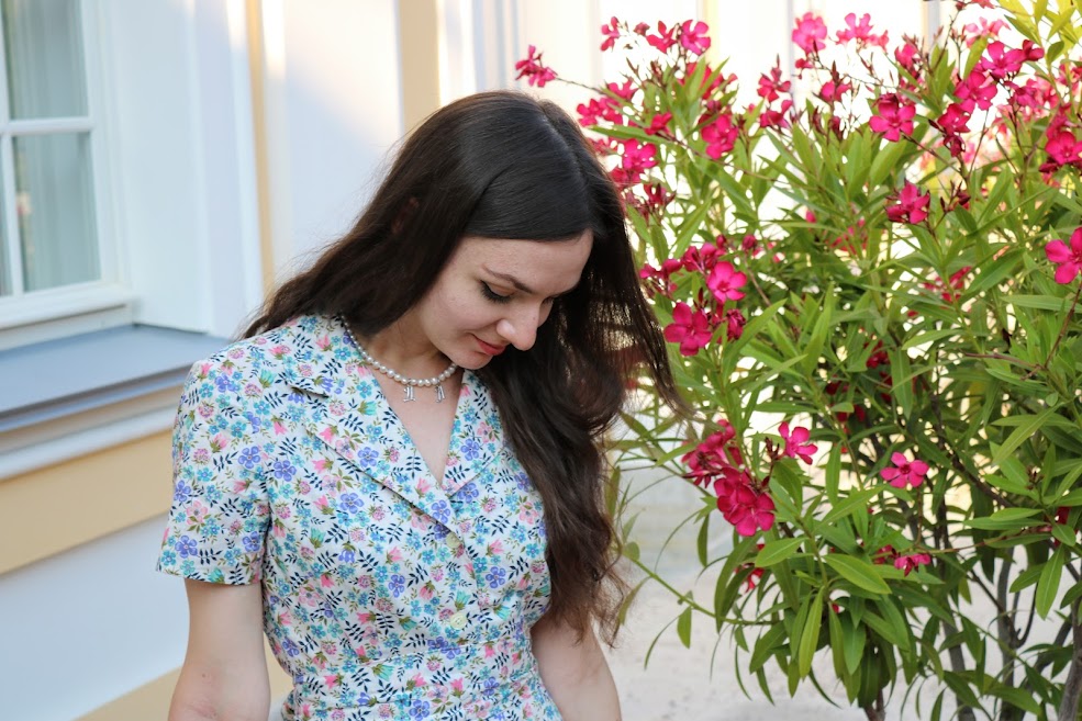 Even though I don’t need as many summer dresses anymore, I still add some to my wardrobe every so often. This year I wanted a shirt floral dress with a collar. But the print I envisioned was something a bit unusual for me - not the bright coloured and big scaled, but muted and ditsy. That’s exactly what Edenham Augusta Linen is. Despite the name, it’s a cotton and linen blend.
